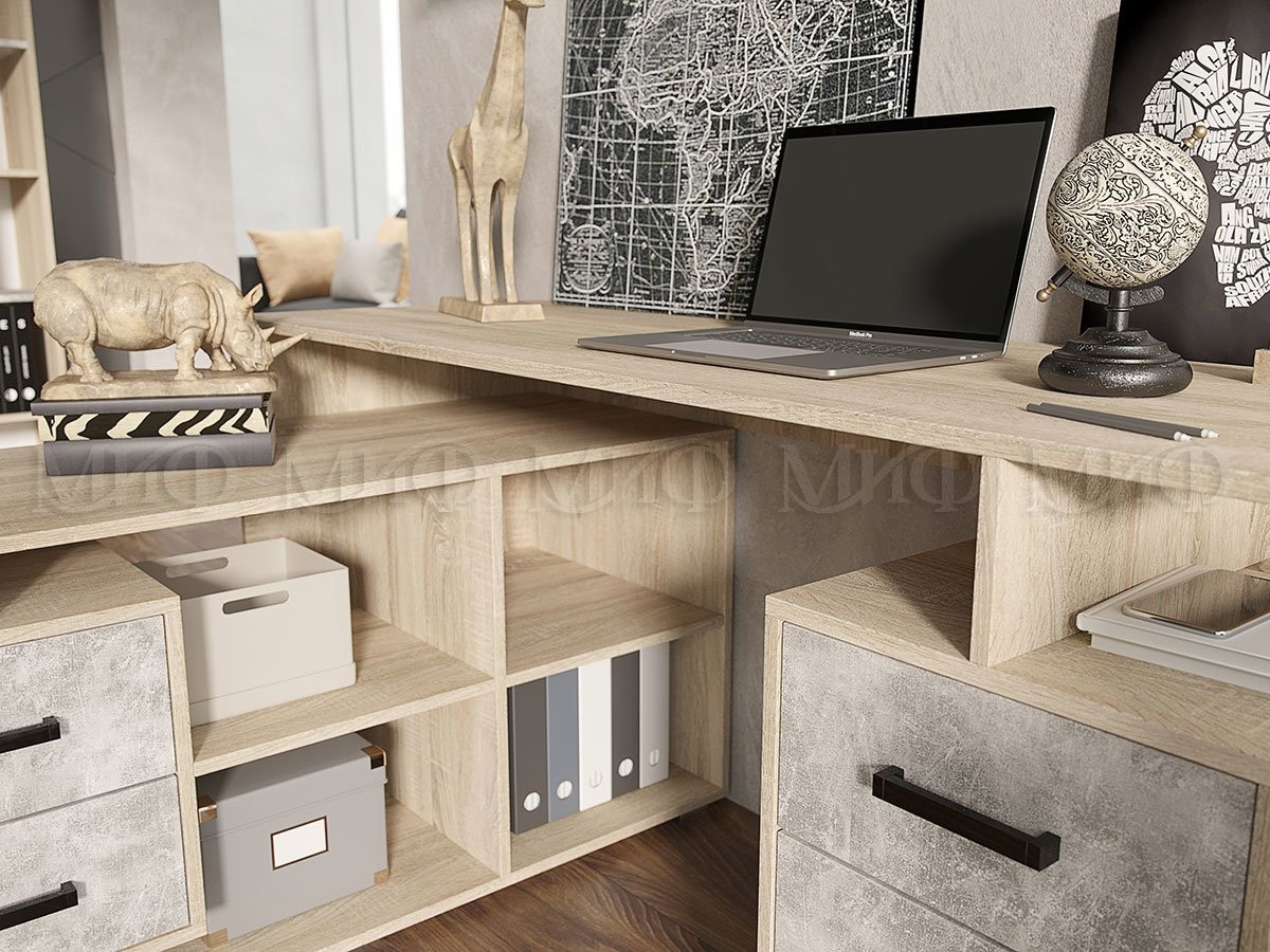 Компьютерный Стол Нидерланды №1 Дуб Сонома/Бетон /Ш-1500 x В-750 x Г-554 мм + Малый стол Ш-1200 x В-588 x Г-490 мм